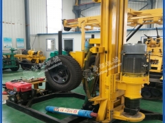 HQZ150D打井机采用挖掘机履带底盘,越野性能强。独立的模块设计,可使钻机装在卡车上,增加其机动性。两档回转和推进速度可满足在土层和岩层的不同穿凿需要。组合式的定位器,可根据不同型号的钻杆和冲击器进行调整更换定位盘,保证定位定心准确、可靠。卷扬机构方便钻杆和冲击器的吊装,降低劳动强度。