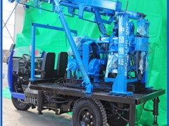 2、 汽车底盘采用五征三轮汽车7YP-1475D1,钻机传动系统及卷扬,泥浆泵等重要附件安装在此底盘上,布局合理紧凑,操作简便